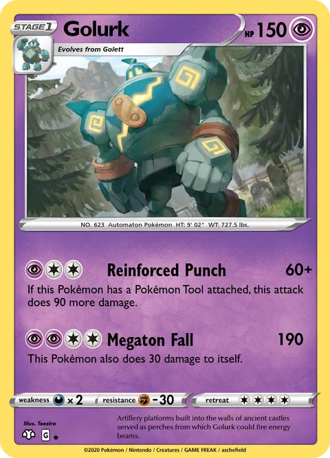 NO. 623 Automaton Pokémon HT: 9' 02" WT: 727.5 lbs.illus. TeeziroArtillery platforms built into the walls of ancient castles served as perches from which Golurk could fire energy beams.Created by @big_caesar123 on 24 November 2023