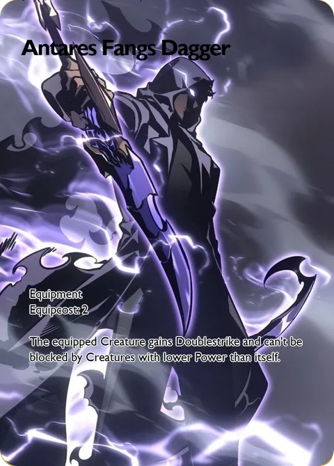 Equipment Equipcost: 2 The equipped Creature gains Doublestrike and can't be blocked by Creatures with lower Power than itself.