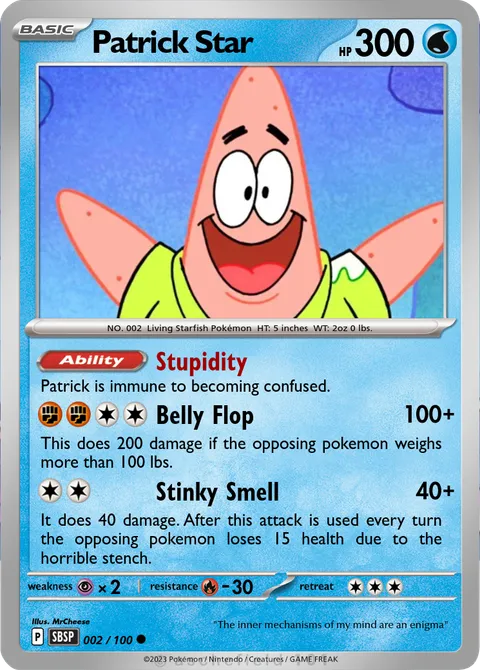 NO. 002 Living Starfish Pokémon HT: 5 inches WT: 2oz 0 lbs.illus. MrCheese#002/100"The inner mechanisms of my mind are an enigma"Created by @cheesemister on 02 April 2024