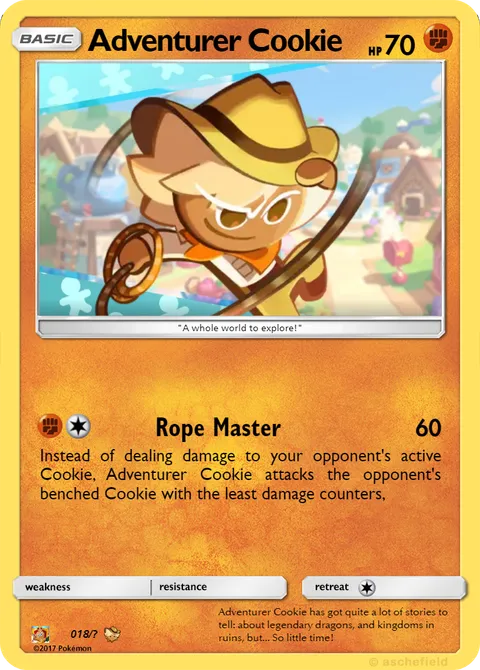 Instead of dealing damage to your opponent's active Cookie, Adventurer Cookie attacks the opponent's benched Cookie with the least damage counters,