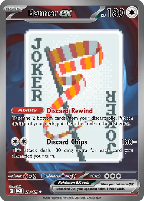 Take the 2 bottom cards from your discard pile. Put on on top of your deck, put the other one in the lost zone.Discard Chips • 180-