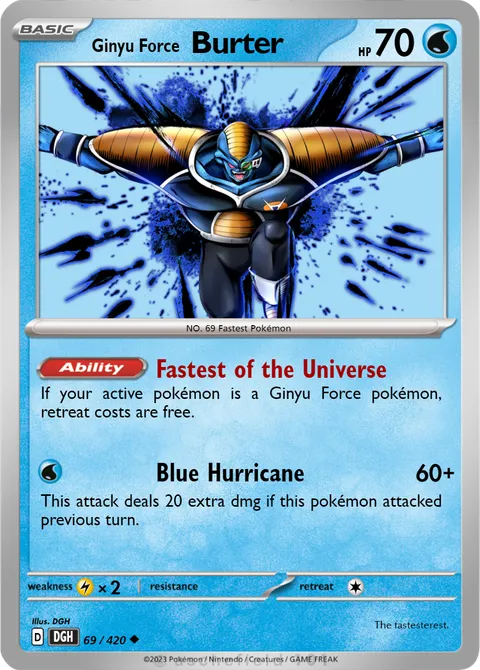 If your active pokémon is a Ginyu Force pokémon, retreat costs are free.Blue Hurricane • 60+
