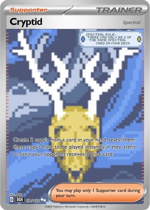 Create 2 copy's from a card in your hand, reveal them, these copy's have to be played instandly, if they aren't or can't, your opponent receives a price card.