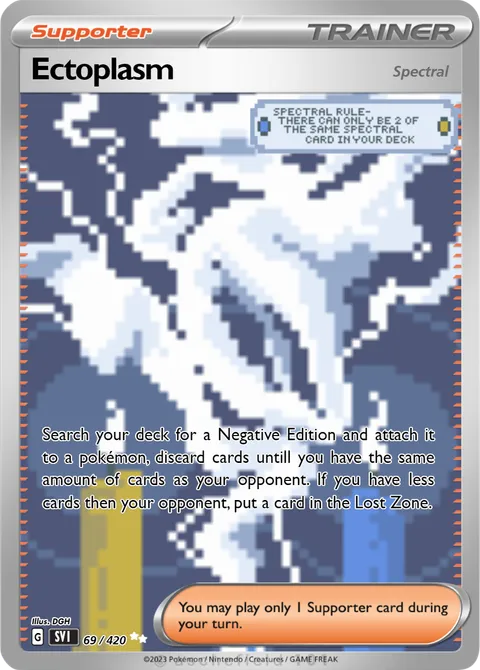 Search your deck for a Negative Edition and attach it to a pokémon, discard cards untill you have the same amount of cards as your opponent. If you have less cards then your opponent, put a card in the Lost Zone.