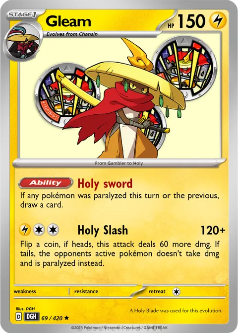 If any pokémon was paralyzed this turn or the previous, draw a card.Holy Slash • 120+