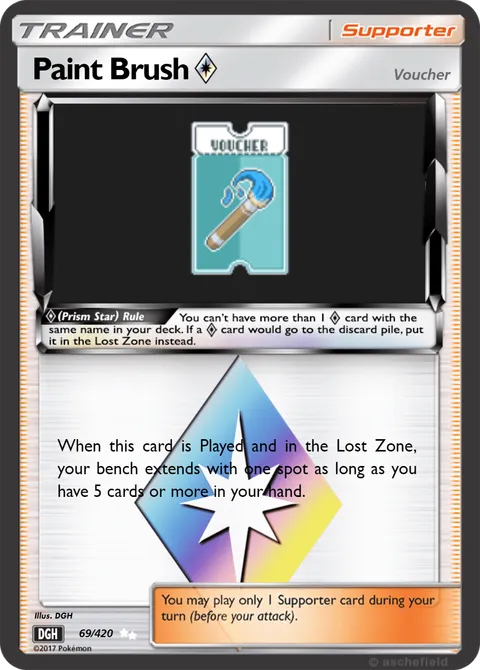 When this card is Played and in the Lost Zone, your bench extends with one spot as long as you have 5 cards or more in your hand.