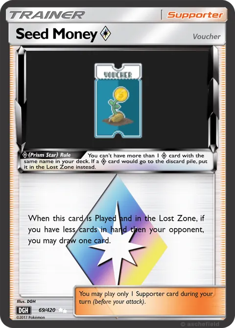 When this card is Played and in the Lost Zone, if you have less cards in hand then your opponent, you may draw one card.