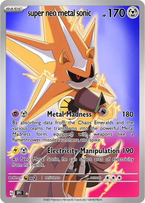 As Neo Metal Sonic, he can shoot arcs of electricity from his hands.