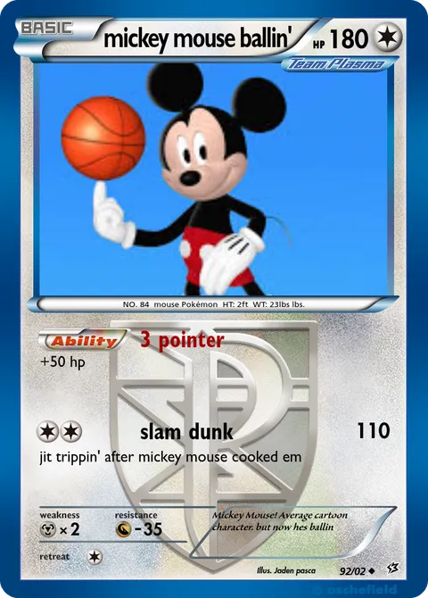 NO. 84 mouse Pokémon HT: 2ft WT: 23lbs lbs.illus. Jaden pasca#92/02Mickey Mouse! Average cartoon character. but now hes ballinCreated by @dogeisw on 21 October 2025