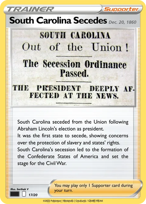 South Carolina seceded from the Union following Abraham Lincoln's election as president. It was the first state to secede, showing concerns over the protection of slavery and states' rights. South Carolina's secession led to the formation of the Confederate States of America and set the stage for the Civil War.