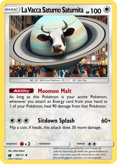 As long as this Pokémon is your active Pokèmon, whenever you attach an Energy card from your hand to 1 of your Pokémon, heal 90 damage from that Pokémon.Sitdown Splash • 60+