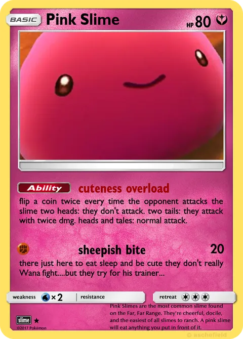 Pink Slimes are the most common slime found on the Far, Far Range. They're cheerful, docile, and the easiest of all slimes to ranch. A pink slime will eat anything you put in front of it.Created by @god-of-teh-chonk-kitrs on 08 March 2026