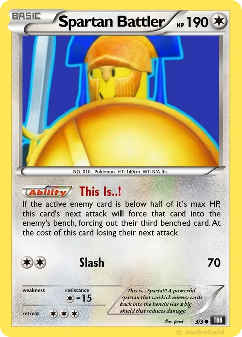NO. 010 Pokémon HT: 140cm WT: N/A lbs.illus. jbird#3/3 This is... Sparta!!! A powerful