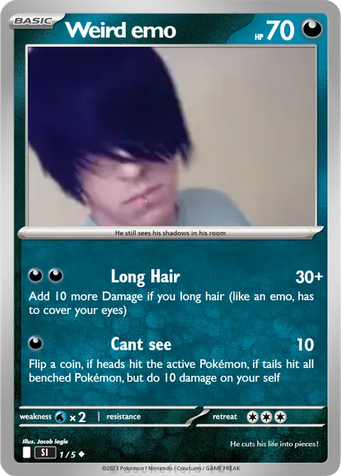Add 10 more Damage if you long hair (like an emo, has to cover your eyes)