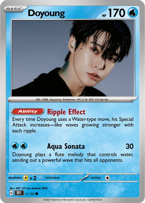 Every time Doyoung uses a Water-type move, his Special Attack increases—like waves growing stronger with each ripple.