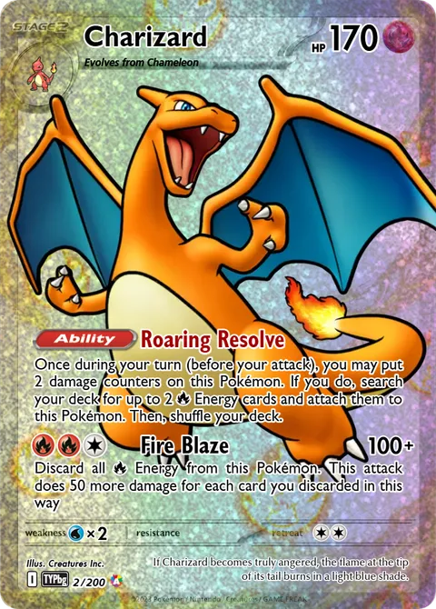 Once during your turn (before your attack), you may put 2 damage counters on this Pokémon. If you do, search your deck for up to 2 R Energy cards and attach them to this Pokémon. Then, shuffle your deck.Fire Blaze • 100+