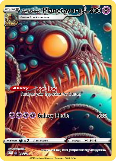 It roams endlessly in the galaxy swallowing nearby planets.