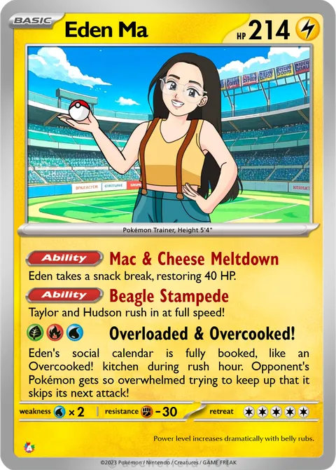 Eden takes a snack break, restoring 40 HP.Ability: Beagle Stampede