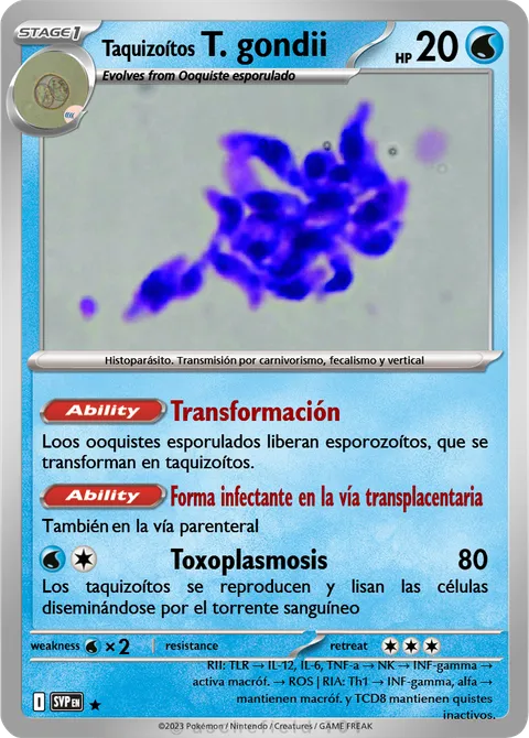 Loos ooquistes esporulados liberan esporozoítos, que se transforman en taquizoítos.Ability: Forma infectante en la vía transplacentaria