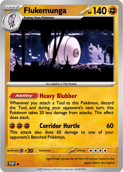 For viability in TCG Pocket.Aged fluke, grown fat on the rich refuse found in the pipes below the capital.Created by @nev07a4200 on 20 August 2025