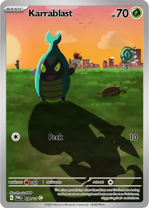 The close proximity when Karrablast and Shelmet are being traded creates a strong bond between the two Pokémon, triggering their evolutions.