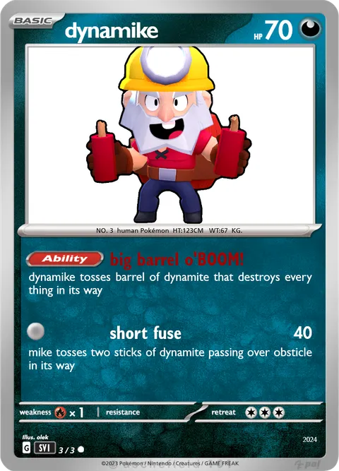 NO. 3 human Pokémon HT:123CM WT:67 KG.
