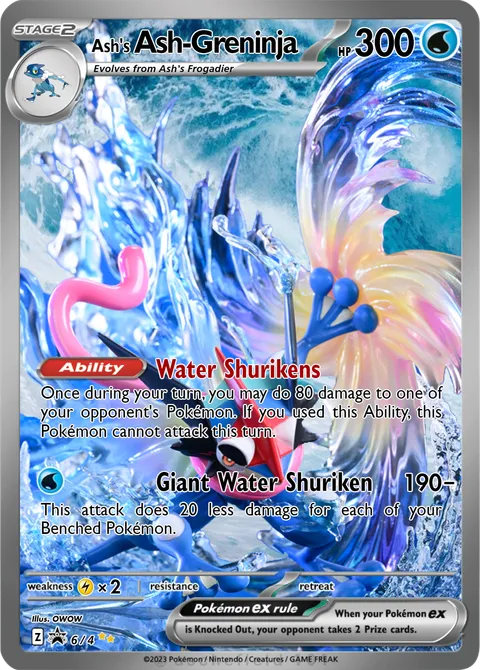 Once during your turn, you may do 80 damage to one of your opponent's Pokémon. If you used this Ability, this Pokémon cannot attack this turn.Giant Water Shuriken • 190-