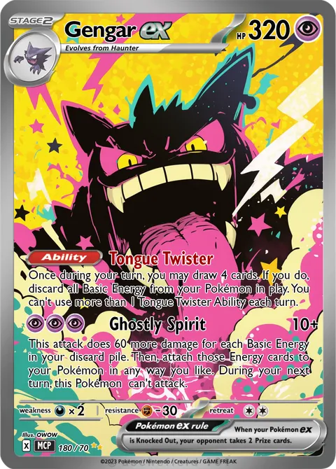 Once during your turn, you may draw 4 cards. If you do, discard all Basic Energy from your Pokémon in play. You can't use more than 1 Tongue Twister Ability each turn.Ghostly Spirit • 10+