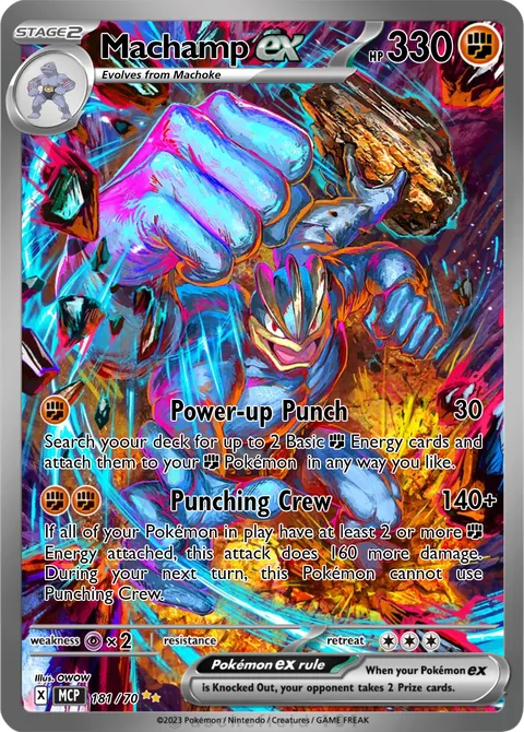 If all of your Pokémon in play have at least 2 or more F Energy attached, this attack does 160 more damage. During your next turn, this Pokémon cannot use Punching Crew.