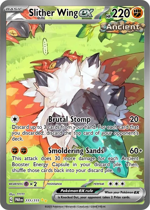This attack does 30 more damage for each Ancient Booster Energy Capsule in your discard pile. Then, shuffle those cards back into your discard pile.