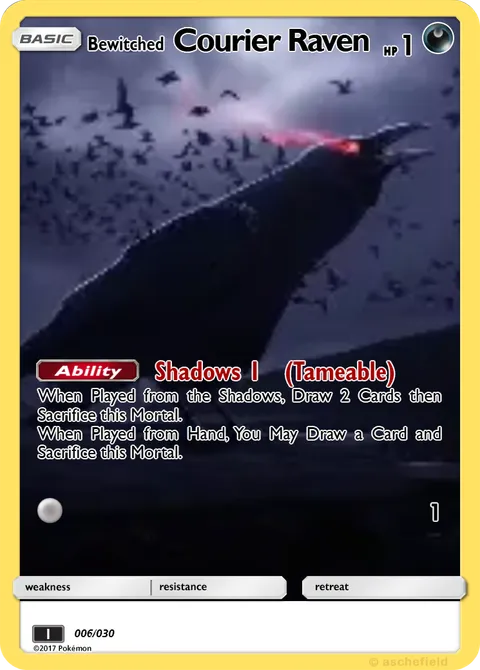 When Played from the Shadows, Draw 2 Cards then Sacrifice this Mortal. When Played from Hand, You May Draw a Card and Sacrifice this Mortal.• 1