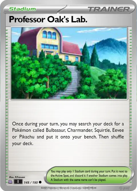 Once during your turn, you may search your deck for a Pokémon called Bulbasaur, Charmander, Squirtle, Eevee or Pikachu and put it onto your bench. Then shuffle your deck.