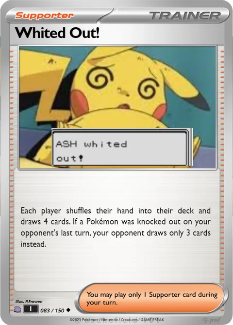 Each player shuffles their hand into their deck and draws 4 cards. If a Pokémon was knocked out on your opponent's last turn, your opponent draws only 3 cards instead.