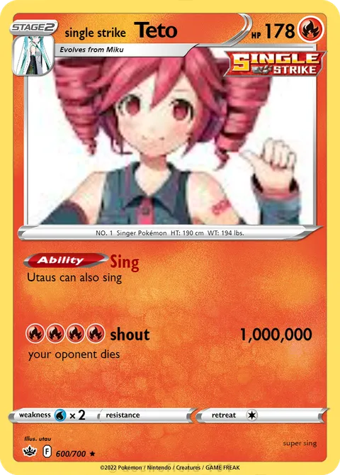 NO. 1 Singer Pokémon HT: 190 cm WT: 194 lbs.