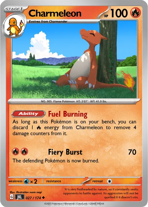 NO. 005 Flame Pokémon HT: 3'07" WT: 41.9 lbs.illus. illustration room nagi#027/174It is very hotheaded by nature, so it constantly seeks opponents to battle against. Its aggression will not be quelled if it doesn't win.Created by @purpletoonlink on 18 August 2024
