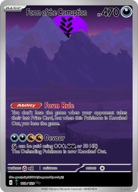 You don't lose the game when your opponent takes their last Prize Card, but when this Pokémon is Knocked Out, you lose the game.Devour
