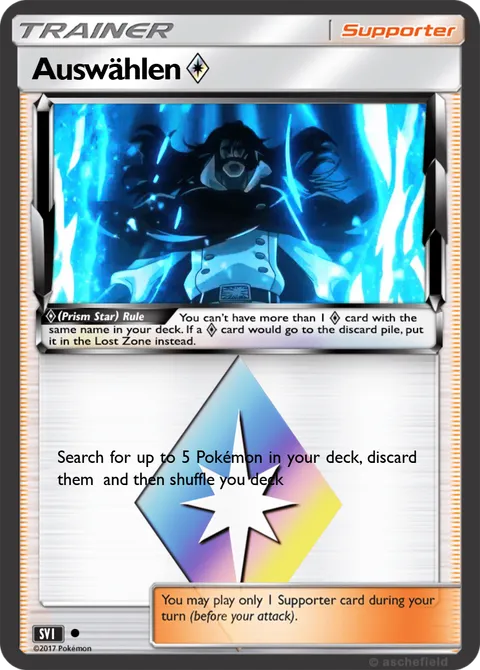Search for up to 5 Pokémon in your deck, discard them and then shuffle you deck