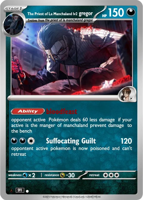 opponent active Pokémon deals 60 less damage if your active is the manger of manchaland prevent damage to the benchSuffocating Guilt • 120