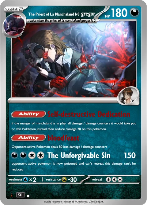 if the manger of manchaland is in play all damage / damage counters it would take put on this Pokémon instead then reduce damage 20 on this pokemonAbility: bloodfeast