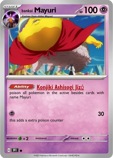 poison all pokemon in the active besides cards with name Mayuri• 30