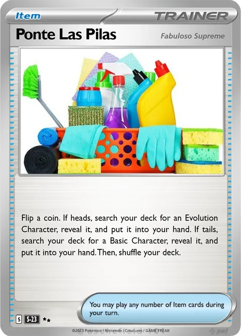 Flip a coin. If heads, search your deck for an Evolution Character, reveal it, and put it into your hand. If tails, search your deck for a Basic Character, reveal it, and put it into your hand. Then, shuffle your deck.