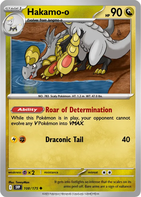 NO. 783 Scaly Pokémon HT: 1.2 m WT: 47.0 lbs.illus. TannyMan#108/175It gets into fistfights so intense that the scales on its arms peel off. Bare arms are a sign of valiance.Created by @rjpmarkes on 02 December 2025