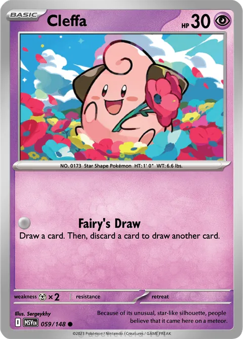 NO. 0173 Star Shape Pokémon HT: 1' 0" WT: 6.6 lbs.illus. Sergeykhy#059/148Because of its unusual, star-like silhouette, people believe that it came here on a meteor.Created by @sergeykhy on 29 December 2025, last edited on 29 December 2025