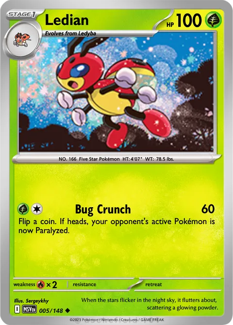 NO. 166 Five Star Pokémon HT: 4'07" WT: 78.5 lbs.illus. Sergeykhy#005/148When the stars flicker in the night sky, it flutters about, scattering a glowing powder.Created by @sergeykhy on 20 December 2025, last edited on 13 January 2026