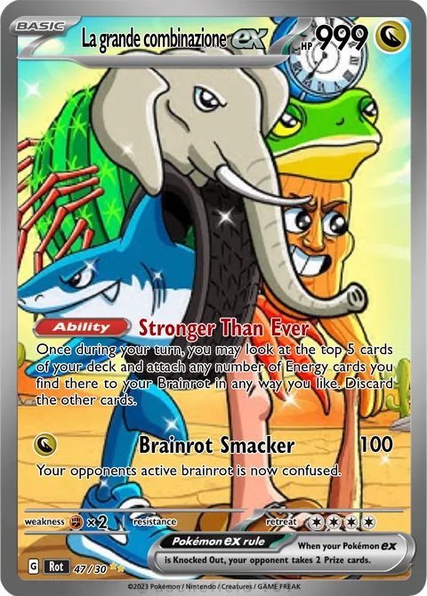 Once during your turn, you may look at the top 5 cards of your deck and attach any number of Energy cards you find there to your Brainrot in any way you like. Discard the other cards.