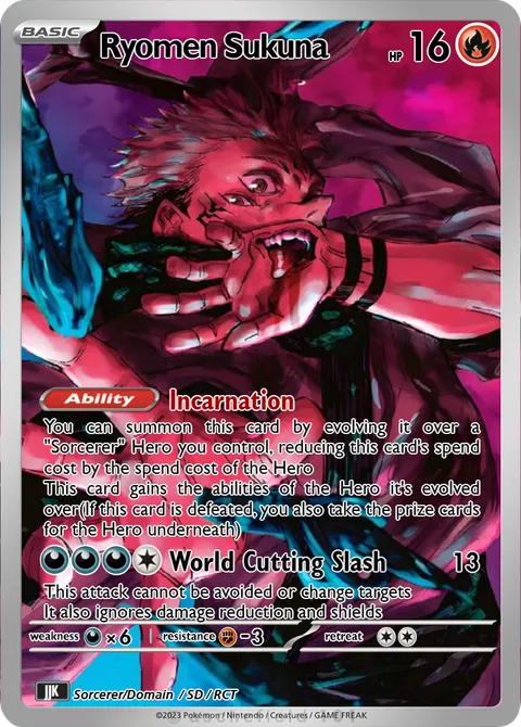 You can summon this card by evolving it over a "Sorcerer" Hero you control, reducing this card's spend cost by the spend cost of the Hero This card gains the abilities of the Hero it's evolved over(If this card is defeated, you also take the prize cards for the Hero underneath)World Cutting Slash • 13