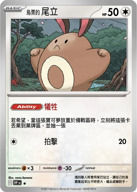 若希望,當這張寶可夢放置於備戰區時,立刻將這張卡 丟棄到棄牌區,並抽一張