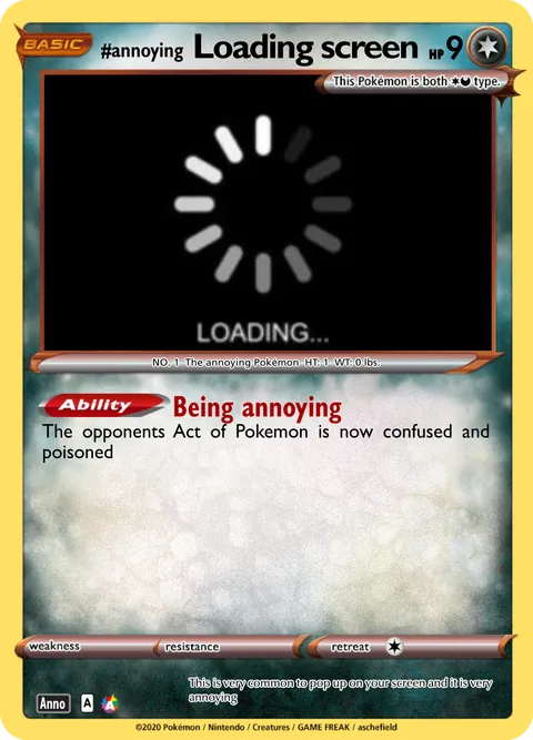 NO. 1 The annoying Pokémon HT: 1 WT: 0 lbs.This is very common to pop up on your screen and it is very annoying Created by @swervingtrain55 on 09 January 2024