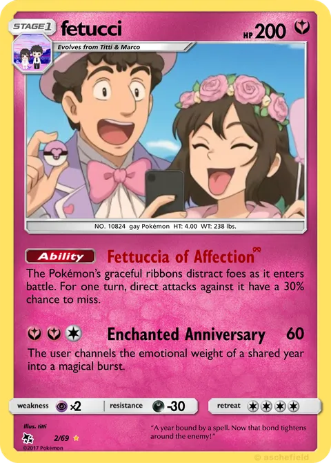 NO. 10824 gay Pokémon HT: 4.00 WT: 238 lbs.illus. titti#2/69“A year bound by a spell. Now that bond tightens around the enemy!”Created by @titti on 01 August 2025Includes assets by Creatures Inc.