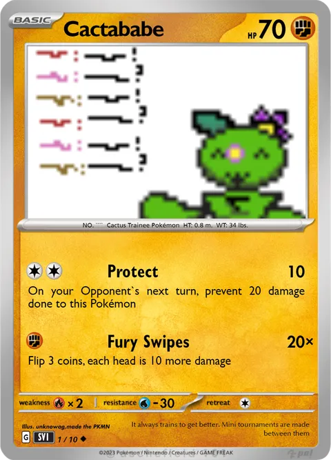 NO. ```` Cactus Trainee Pokémon HT: 0.8 m. WT: 34 lbs.illus. unknowag,made the PKMN#1/10It always trains to get better. Mini tournaments are made between themCreated by @unknowag on 22 November 2023